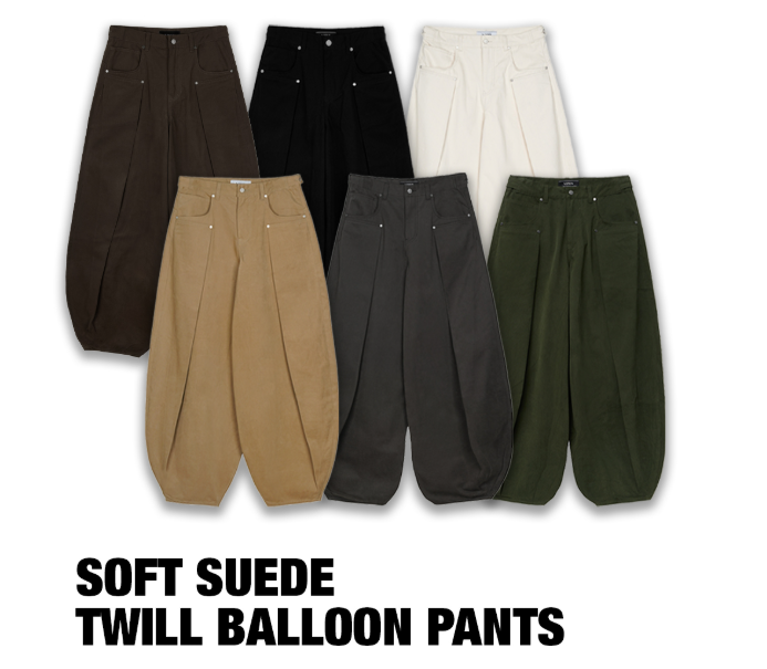 같은 벌룬이지만 Soft Suede Twill보다 활동성이 높다. 소재가 가볍고 움직임이 자유롭다. 스트릿 무드를 약간 더 얹고 싶을 때, 혹은 편하게 하루를 보내야 할 때 꺼낸다.