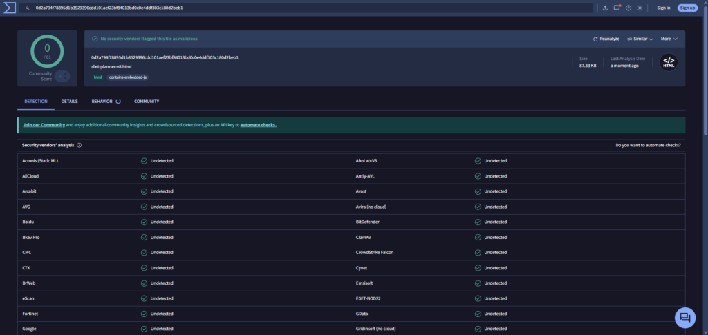 바이러스가 일체 없는 것을 확인할 수 있다.